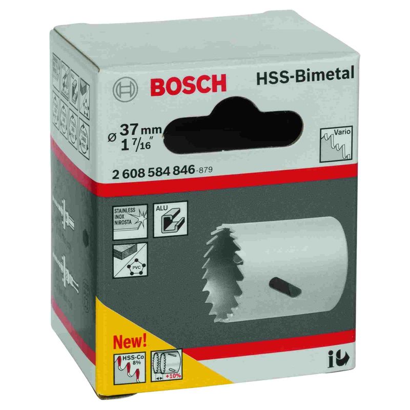 A serra copo em bimetal encaixa em todos os adaptadores standard no mercado, ela efetua o corte com rapidez em vários materiais. A configuração do dente (tira de dente Vario) é ideal para deslizar através do material para fazer cortes rápidos e precisos. Feita de HSS bimetal (aço de corte rápido) com 8% de liga de cobalto, esta serra copo apresenta um risco menor de quebra de dente e maior resistência ao calor para um corte de longa duração. Utilize esta serra copo ao cortar madeira, metal, inox e plásticos