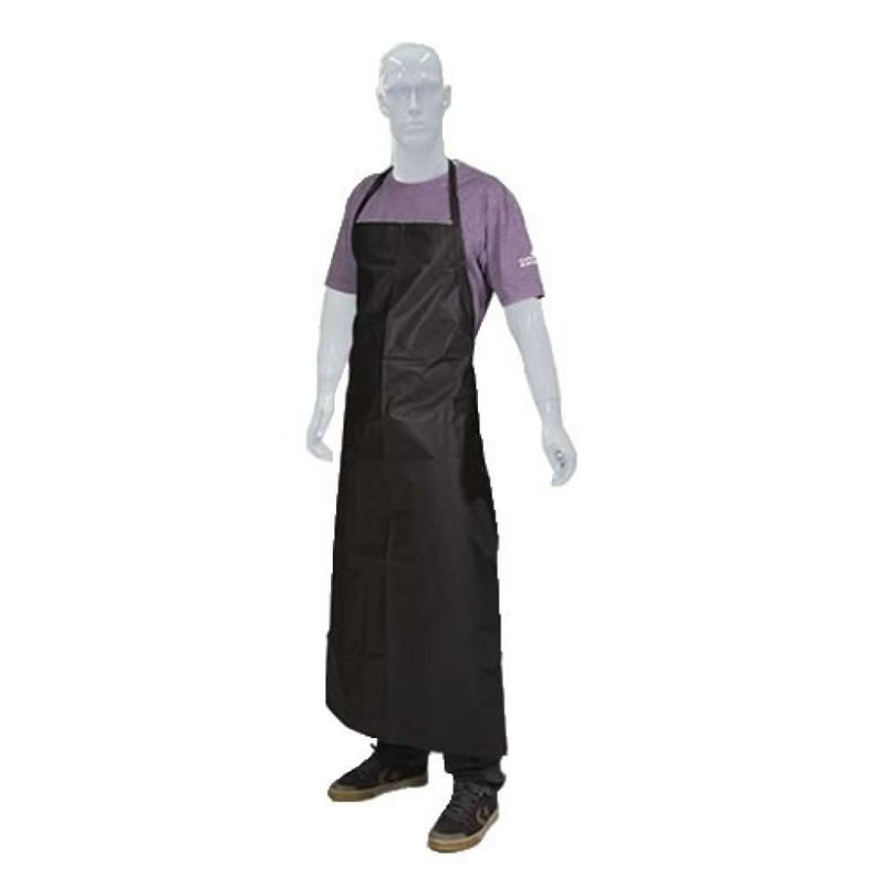 · Avental de segurança, confeccionado em pvc com forro poliéster, com tiras do mesmo material para ajustes na cintura, costura com linha de poliéster. C. A. 15010