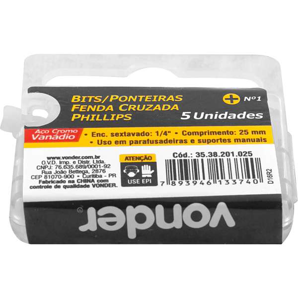 | Conteúdo da Embalagem | 1 Cartela com 5 bits/ponteira phillips |