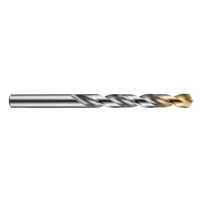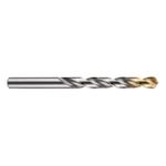 Broca com haste paralela, diâmetro 7mm com um comprimento total de 109mm e comprimento útil de 69mm de acordo com padrão DIN 338 com ponta com afiação em cruz modificada 118°, feita em HSS com cobertura TiN-tip para furação sem guia 4xD em aço.