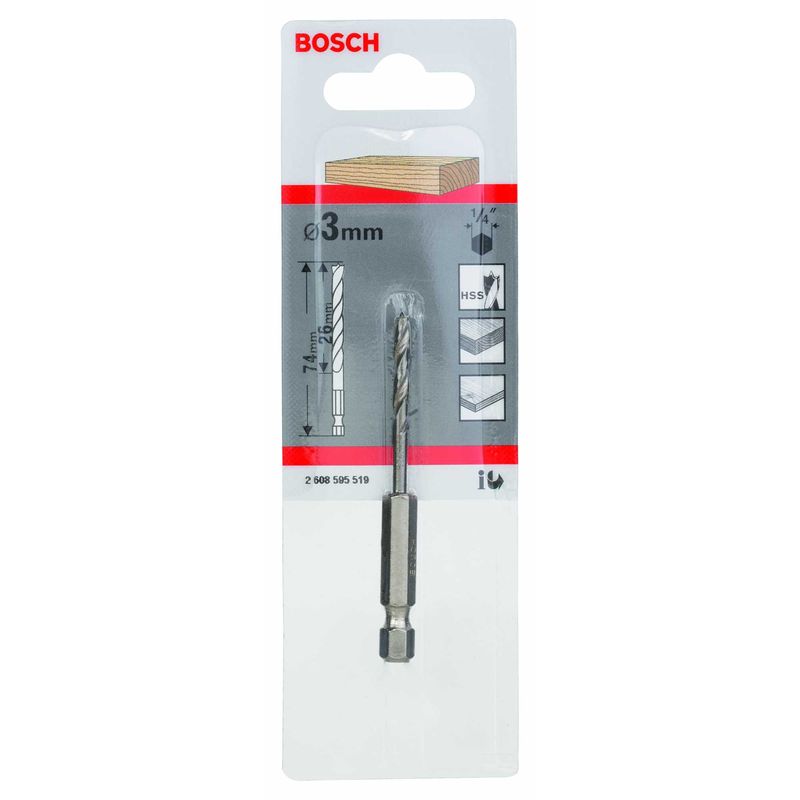A Broca para Madeira Bosch de 3 Pontas executa perfurações precisas em madeiras macias e duras. Sua ponta centralizadora permite posicionamento exato para a perfuração e suas arestas de corte extremamente afiadas efetuam furos sem rasgos com alta precisão. O espiral duplo permite rápida saída de material evitando a obstrução do furo trazendo mais velocidade de perfuração. A Broca é fabricada com Aço Rápido (HSS) de alta qualidade, possui encaixe cilíndrico e pode ser utilizada tanto para furos de passagem quanto de bolso. É indicada para perfurações em madeira, madeira dura, madeira maciça, madeira macia, placas de aglomerado de madeira, contraplacado e placas de madeira estratificadas, e utilização em Furadeiras, Parafusadeiras, Chaves de Impacto, Furadeiras de Coluna e Furadeiras de Bancada.
