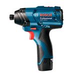 A Chave de Impacto a Bateria de ¼" Bosch GDR 120-LI, 12V, além de ser super leve e compacta, é a única do mercado com 2 velocidades e líder absoluta do segmento em autonomia de baterias. Vem com luz de led para trabalhar em áreas menos iluminadas e é 100% Compatível com Baterias e Carregadores 12V Bosch.