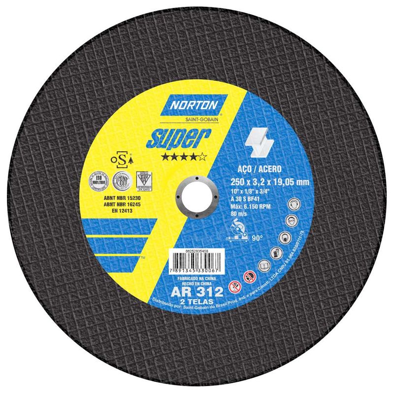 · Disco de corte com 250mm de diâmetro externo, 19.05 de diâmetro interno e 3.2mm de espessura. Indicado para montagem e manutenção industrial, manutenção pesada e indústrias em geral. Os discos são produzidos com as mais atualizadas tecnologias de produto e processo, possui a marca de segurança ABNT e conta com a certificação ISO 9001:2008. Tem também as certificações ISO 14001 e OHSAS 18001, no que se refere a conformidade com os requisitos ambientais, saúde e segurança do trabalho, respectivamente