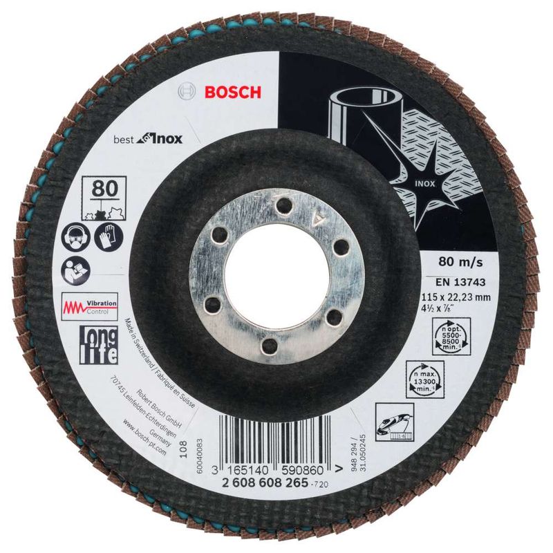 | Inclui | 1 peça de Disco Flap X581 Best for Inox; 115mm G80; Curvo; Fibra de Vidrio |