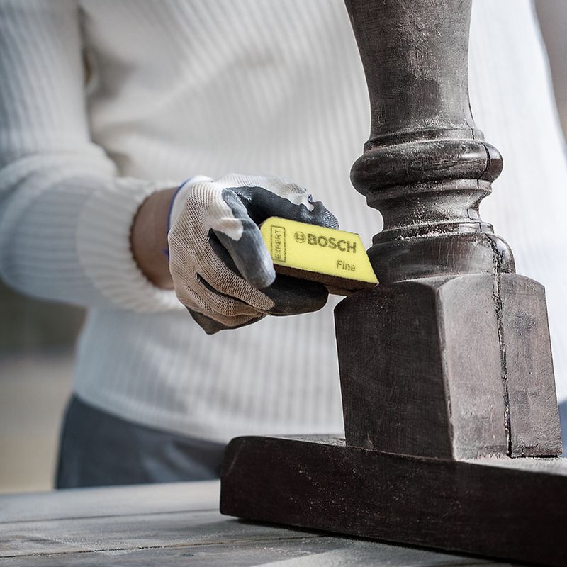 A esponja abrasiva EXPERT S473 pode ser lavada e reutilizada várias vezes. Possui pontas de esponja fortes para lixar bordas. Além disso, é revestida nos quatro lados com grão abrasivo resistente à perda de grão. A esponja abrasiva está disponível em 3 cores que indicam os vários tamanhos de grão para os diferentes passos do polimento, como desbaste, preparação e polimento final. A esponja abrasiva EXPERT S473 oferece manuseamento fácil no polimento de diversos contornos e superfícies. A esponja abrasiva EXPERT S473 oferece manuseamento fácil para polimento de superfícies de diversos materiais. A forma perfilada da esponja é confortável e adapta-se perfeitamente à peça trabalhada para remover material de forma eficaz. Ideal para trabalho de polimento em madeira e tinta. Conta com a tecnologia Surface Structure da Bosch e dura até 5 vezes mais que a lixa C420. É adequada para texturizar madeira, plástico e metal como preparação para a tinta e para o polimento intermediário de vernizes e tintas. Indicado para polimento manual. Garantia 6 meses Bosch.