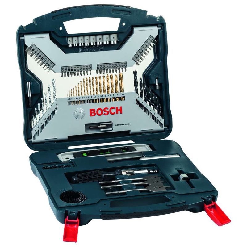 O Kit de Pontas e Brocas em Titânio X-Line Bosch é um produto completo e ideal para quem busca praticidade para executar diferentes tipos de trabalho. O Kit inclui uma variedade de pontas e brocas, além de diversos acessórios que auxiliam em aplicações de parafusamento, perfuração e fixação. O design das Pontas foi desenvolvido para evitar o desgaste da cabeça dos parafusos trazendo maior firmeza durante as aplicações, e possuem o encaixe em formato hexagonal que evita o deslizamento na ferramenta. São acompanhadas também por um suporte universal magnético que possibilita trocas rápidas e a fixação segura das pontas. O Kit possui um variado portfólio de brocas com diferentes diâmetros, sendo as de aço rápido em titânio para aplicações em metal, brocas com ponta de metal duro para perfurações em alvenaria, brocas de três pontas para madeira e as brocas planas em titânio que permitem perfurações em maiores diâmetros nos diferentes tipos de madeira. Os revestimentos de Titânio nas Brocas de Aço Rápido e nas Brocas Planas proporcionam maior velocidade e durabilidade durante as aplicações. Com sua ampla variedade de acessórios, o Kit pode ser utilizado em diversas aplicações desde reparos, instalações e montagens, até pequenos trabalhos em obras, serralherias e marcenarias, além de acompanhar uma maleta robusta que facilita a armazenagem, transporte e acesso de todo o conteúdo de forma bastante organizada.
