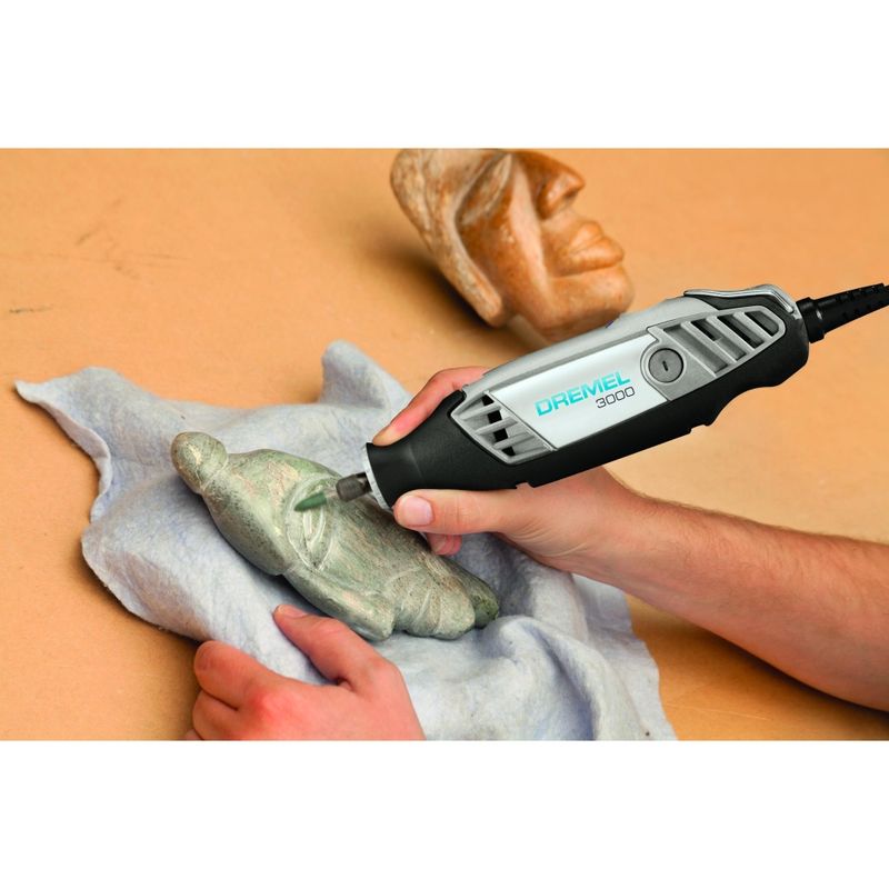 | Conteúdo do Produto | 1 Dremel 3000, 1 eixo flexível para detalhe (modelo 225), 1 estojo plástico de acessórios com 1 escareador para gravar de ponta redonda de 1,6mm para madeira, metal, couro, plástico, EVA e papelão (modelo 106), 1 escareador para gravar de ponta redonda de 2,4mm para madeira, metal, couro, plástico, EVA e papelão (modelo 107), 36 disco de corte de 23,8mm com espessura de 0,6mm para metal (modelo 409), 1 haste para lixar de 12,7mm com tubo de lixa de grão grosso para madeira, fibra de vidro, plástico e EVA (modelo 407), 1 tubo de lixa de 12,7mm de grão grosso para madeira, fibra de vidro, plástico e EVA (modelo 408), 36 disco de lixa de 19,1mm de grão grosso para madeira e remoção de pintura (modelo 411), 2 disco de feltro para polir de 12,7mm para metal, pedras e vidro (modelo 414), 1 pasta para polir e limpar (modelo 421), 1 broca de aço rápido de 3,2mm para madeira, plástico, ouro, bronze, latão e alumínio (modelo 150), 1 haste para accesórios de feltro (modelo 401), 1 haste para discos (modelo 402), chave e manual |
