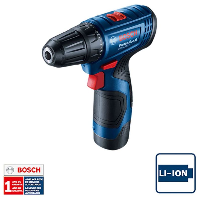 A Parafusadeira e Furadeira a Bateria Bosch GSR 120-LI tem excelente autonomia que proporciona ainda mais produtividade para os seus trabalhos. É compacta e leve, com apenas 17cm de comprimento e possui maior vida útil devido ao sistema ECP, que protege eletronicamente as células da bateria. Além disso, a ferramenta é 100% compatível com baterias e carregadores 12V Bosch. Seu torque é versátil, pois o máximo serve para trabalhos pesados (30Nm) e também para trabalhos leves (14Nm). Seu motor ainda oferece maior rotação, proporcionando mais rapidez, devido ao gatilho eletrônico com velocidade variável e reversível, com duas velocidades 0 – 400 rpm / 1500 rpm. O mandril de aperto rápido oferece ainda mais facilidade e praticidade para realizar seus serviços.