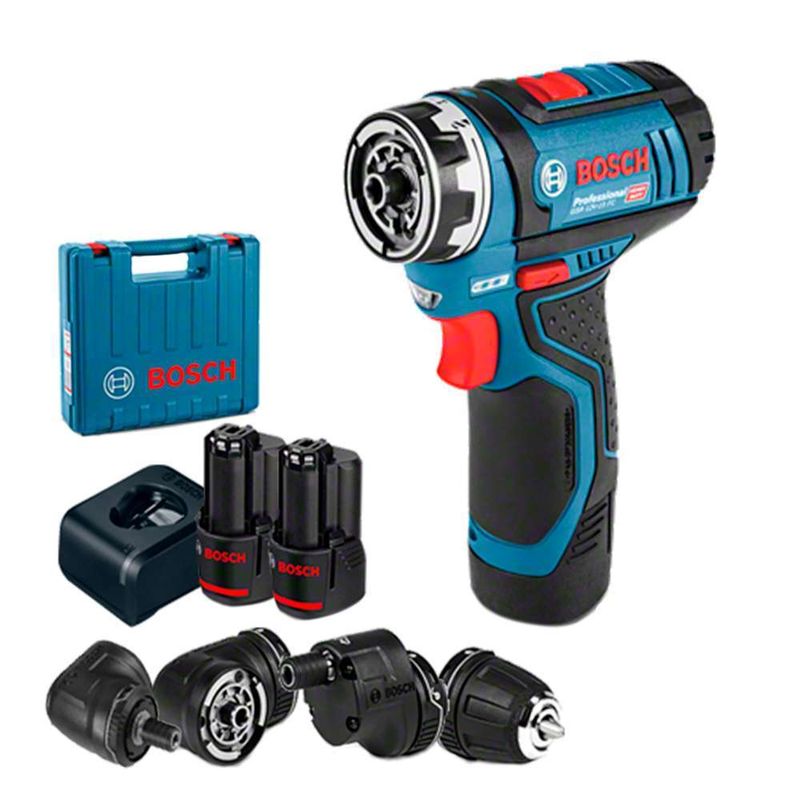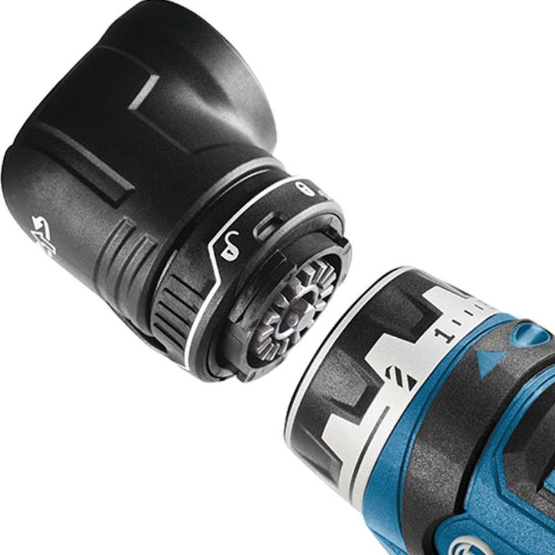A Parafusadeira e Furadeira a Bateria Bosch GSR 12V-15 FC Flexiclick, 12V, é a única ferramenta que vem com 4 mandris adicionais e permite usar a mesma ferramenta em 5 funções diferentes: mandril de 1/4" sextavado, mandril angular, mandril excêntrico, mandril de troca rápida e o mandril de 3/8" da própria ferramenta! Você paga por 1 e leva 5! Além disso, a ferramenta é 100% Compatível com Baterias e Carregadores 12V Bosch.